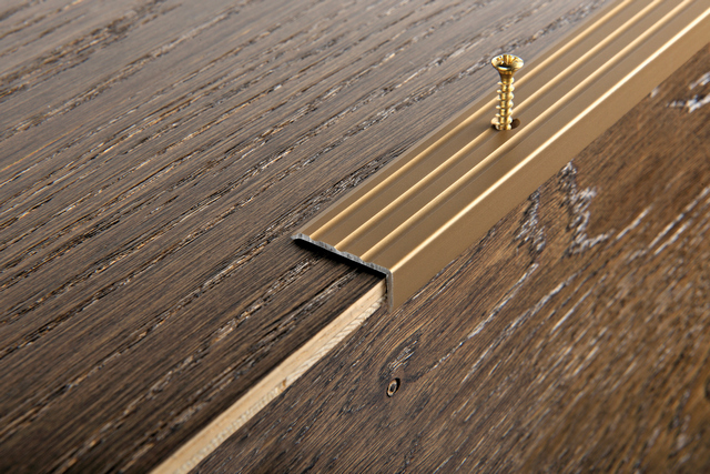 Profil za stepenice izrađen od eloksiranog aluminija, idealan je za zaštitu rubova i kuteva između čela i gazišta stepenice, što su najizloženije površine i podvrgnute većini udara. Gornji dio je reljefan kako bi se poboljšala protukliznost. Raspoloživ s rupama na tiple ili s ljepilom. Montira se na već gotovu stepenicu.
