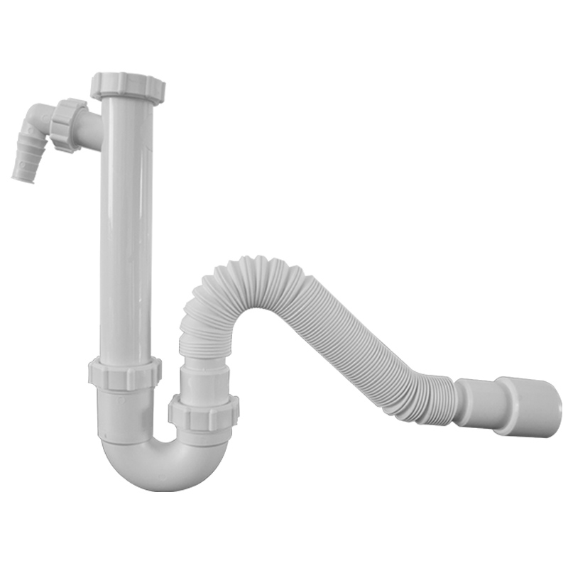 Sifon za sudoper bez pilete sa priključkom i gibljivom cijevi. S gumenim nepovratnim ventilom.